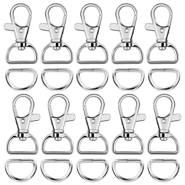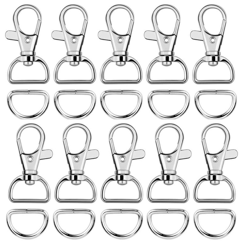 20Pcs Swivel Snap Hooks and D Rings for Lanyard and Sewing Projects (1" Inside Width)