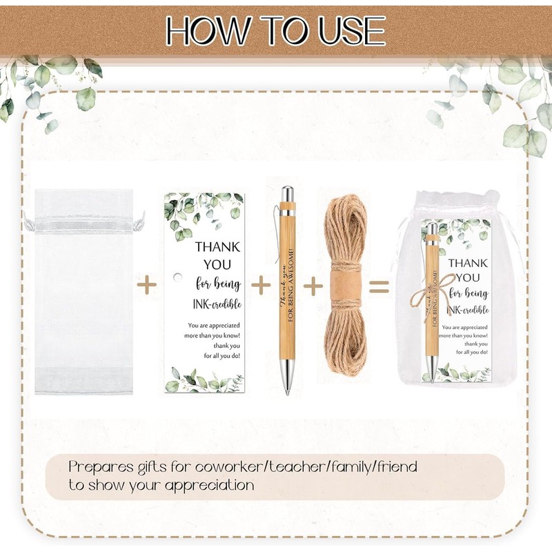 - 【Show Your Concern】with these employee gifts including thank you bamboo pens, cards and twine, you can convey your heartfelt appreciation to your employees, coworkers, teammates and more, showing your care and gratitude for their hard work and dedication