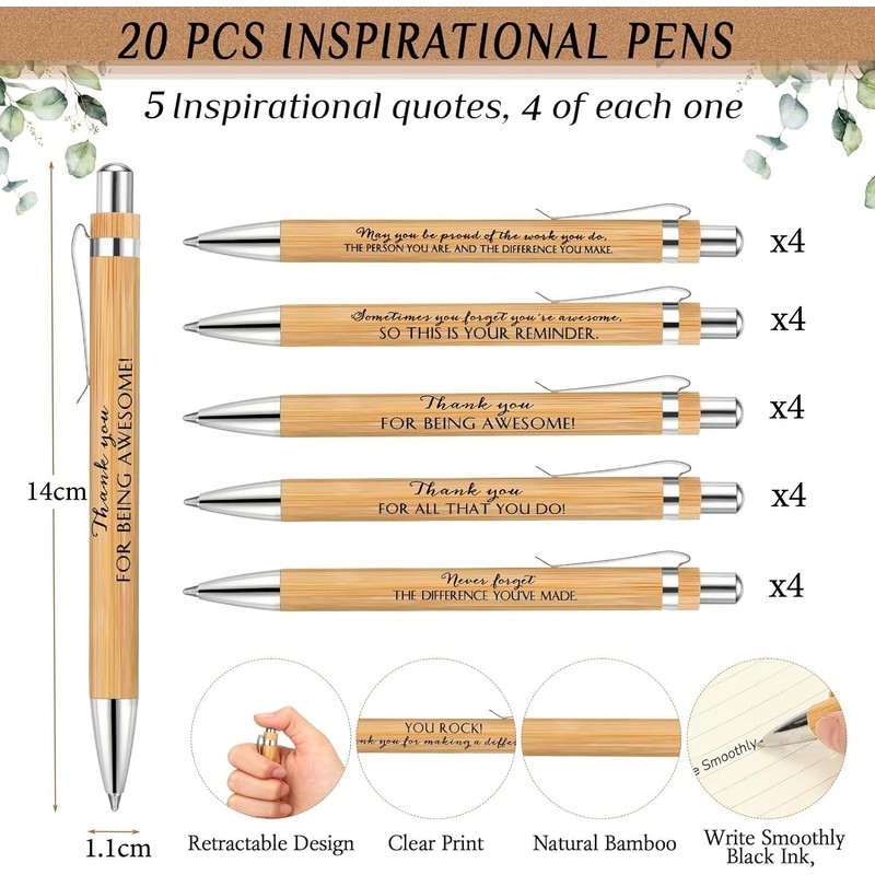 - 【Complete Package for Gratitude】this employee appreciation set includes 20 pieces of inspirational pens in 5 styles, 20 pieces of thank you cards, and 1 rolls of twine, providing what you need to express appreciation in style, sufficient to use and share