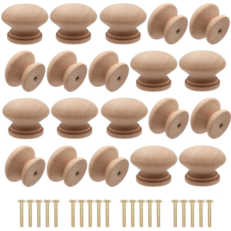 20Pcs Wooden Cabinet Knobs Unfinished Wood Knobs for Dresser Mushroom Drawer Knobs Pulls Handles (1.3" Dia., 1" Height, with Screws)