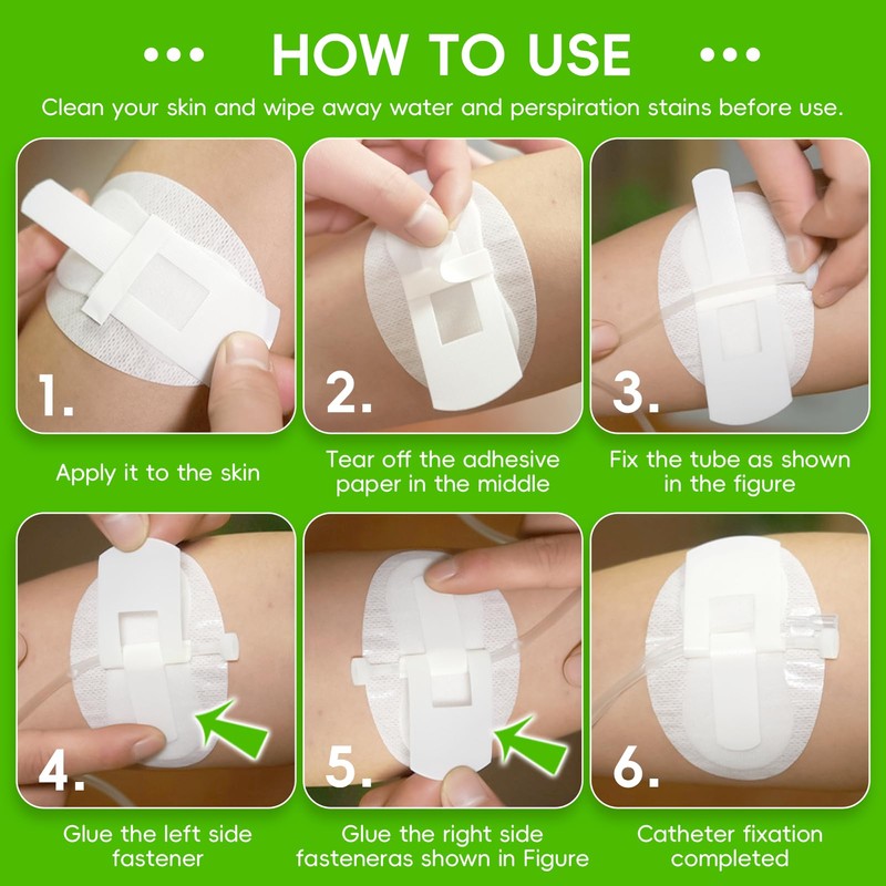 - [Easy To Use:]Stick the catheter fixation bracket on the skin,tear off the center sticky paper,fix the tube,stick the left hook to the right side,stick the right hook to the left side,easy to hold the catheter in place.