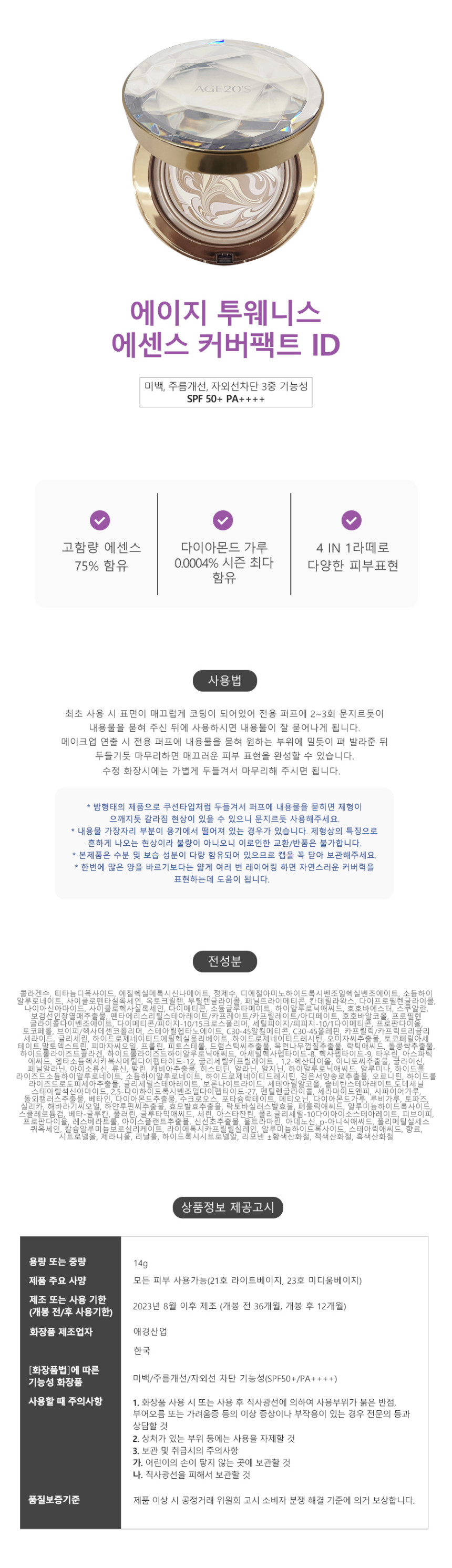에이지20s 팩트 다이아 에디션 최신상 아이디 본품 Age 20's Pact Diamond Edition Latest Version ID ...