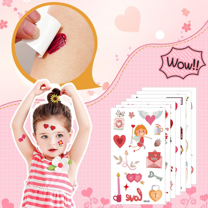 20Sheets Valentine's Day Temporary Tattoos Kids Tattoos Temporary Tattoo Stickers Waterproof Fake Tattoos Cute Children Tattoos Waterproof Tattoos Kids Fake Tattoos Animals Tattoos Cartoon Tattoos For Kids
