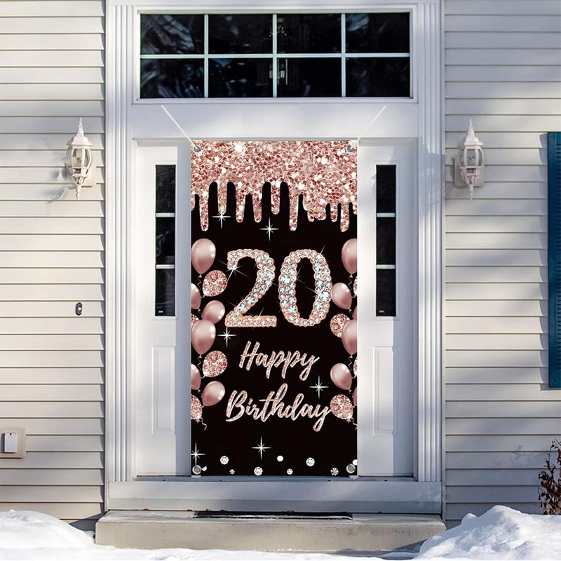 20th Birthday Decoration for Girls Happy 20.th Birthday Poster Door Banner Bl...