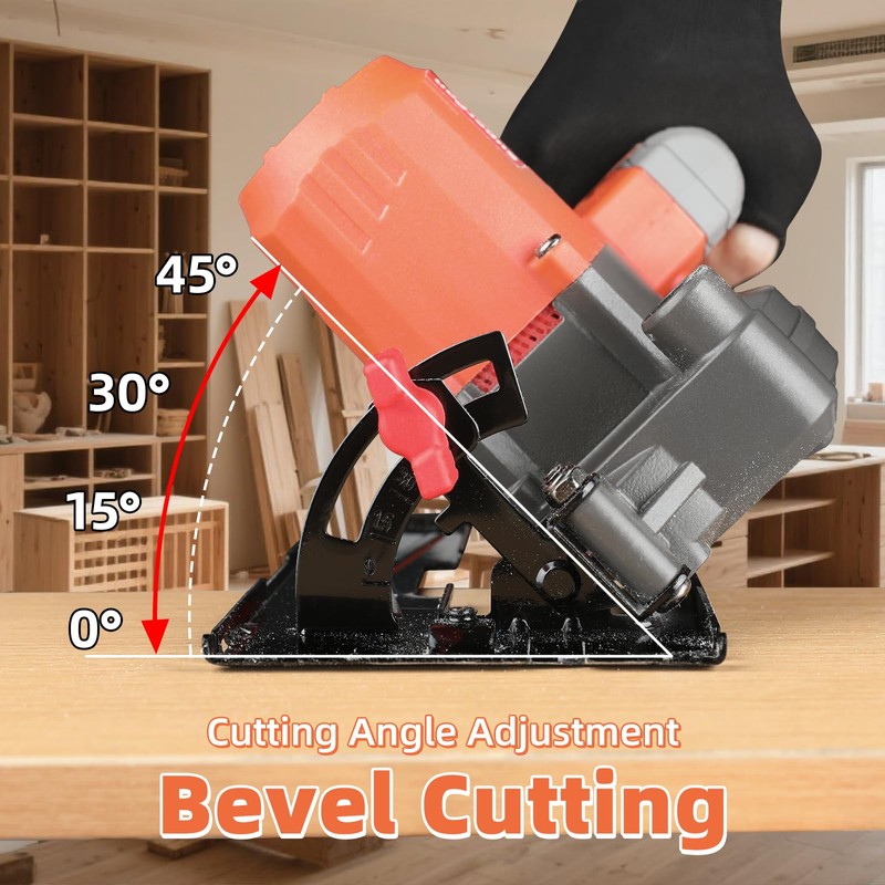 - 【Powerful Mini Circular Saw with 6.0Ah Extended Runtime】This Mini Circular Saw features a high - performance brushless motor paired with a 20V 6.0Ah Li-ion battery (60% larger capacity than standard 4.0Ah models), delivering up to 4.5 hours of continuous cutting for long - term projects. The 4 - 1/2 - inch saw blade and 6700 RPM no - load speed ensure precise cuts, while the brushless motor boosts efficiency by 30% and extends tool lifespan. Weighing only 4.36lbs, this cordless model is super portable for workshops, outdoors, or home DIY, easily slicing through wood, tile, plastics, PVC, and soft metals