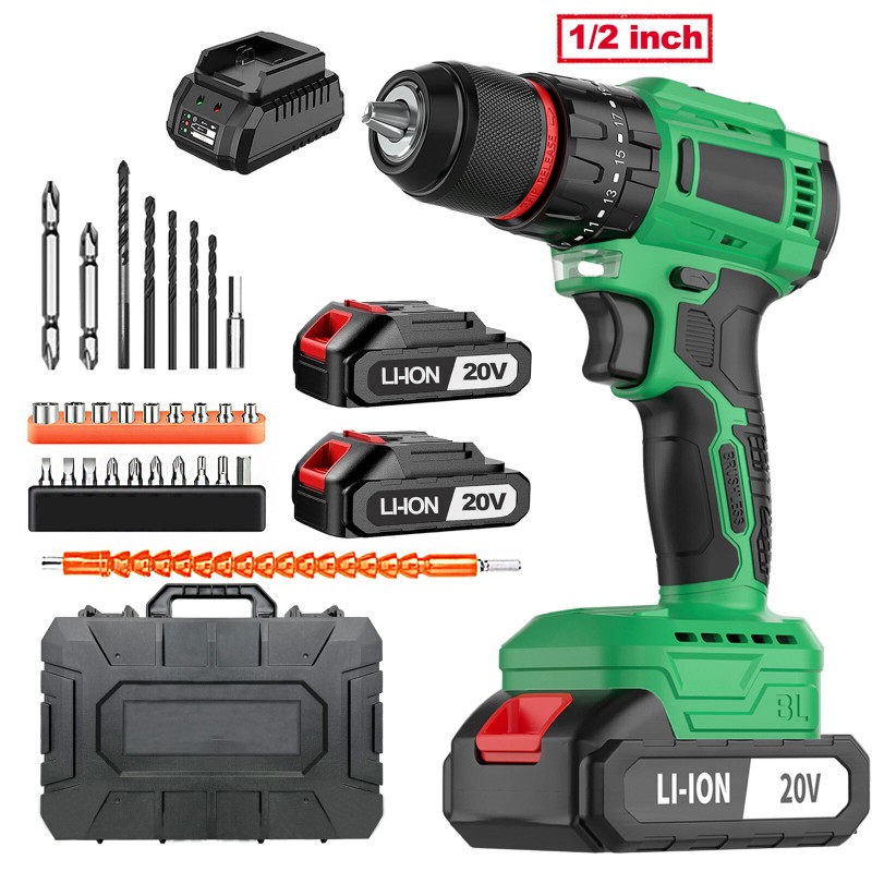 20V Cordless Brushless Drill Set, Rechargeable Drill Driver with 2Ah Battery, 3/ 8-inch Keyless Chuck, 18+3 Position Drill, 2-Speed Transmission for Screwdriver and Drilling