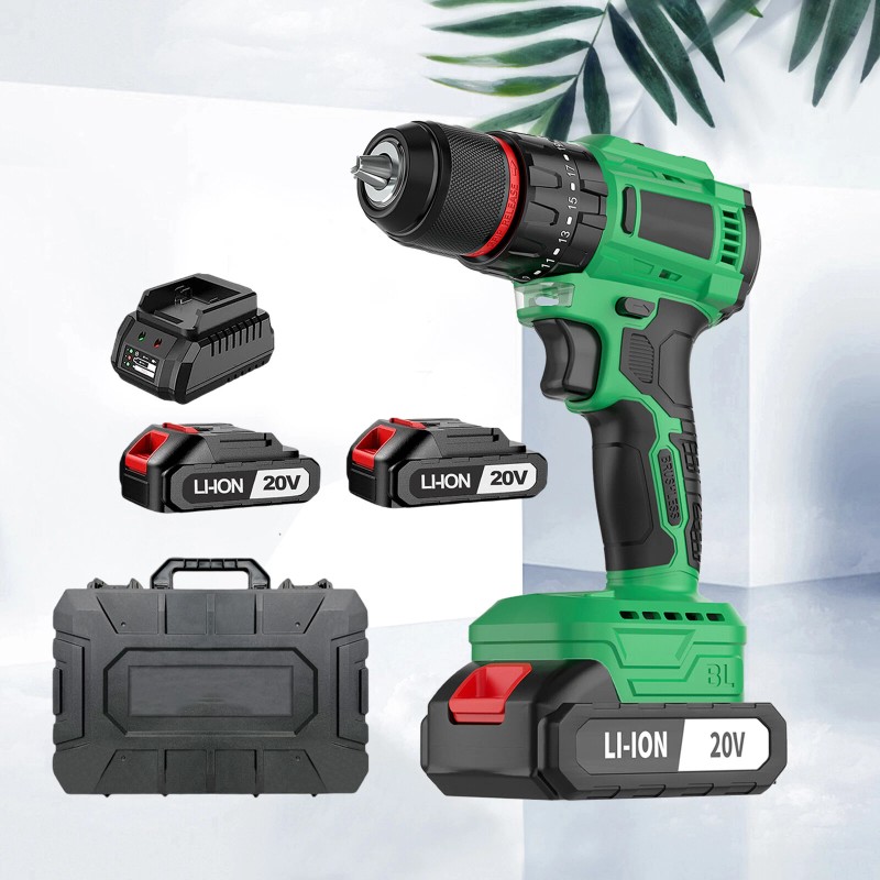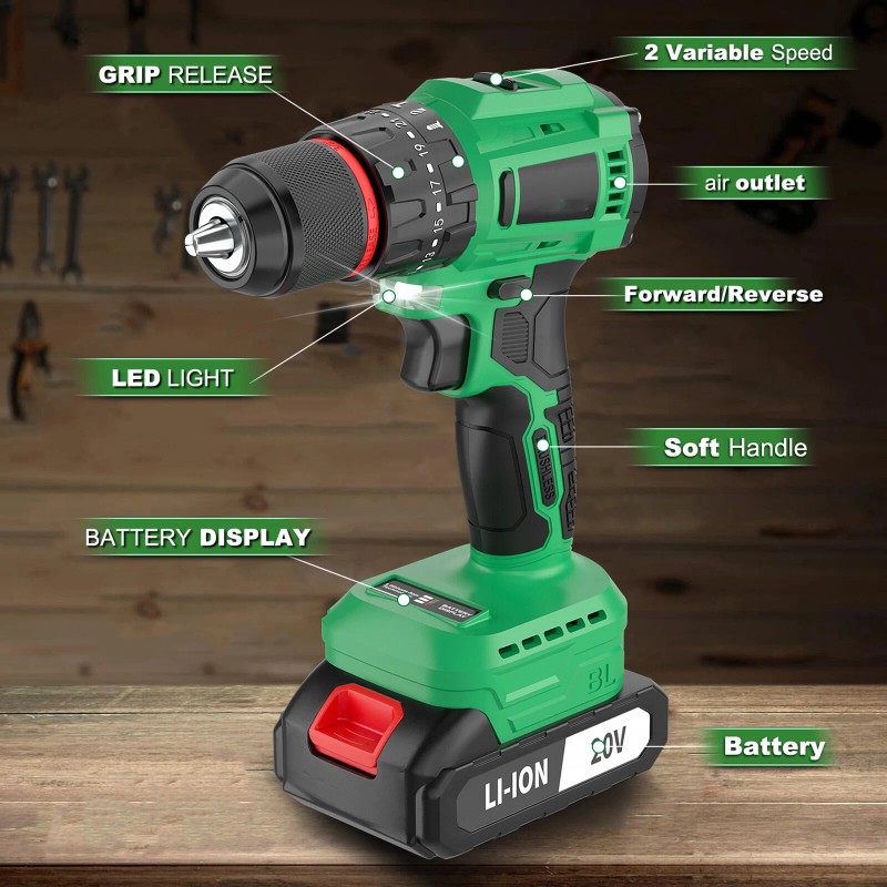 20V Cordless Brushless Drill Set, Rechargeable Drill Driver with 2Ah Battery, 3/ 8-inch Keyless Chuck, 18+3 Position Drill, 2-Speed Transmission for Screwdriver and Drilling