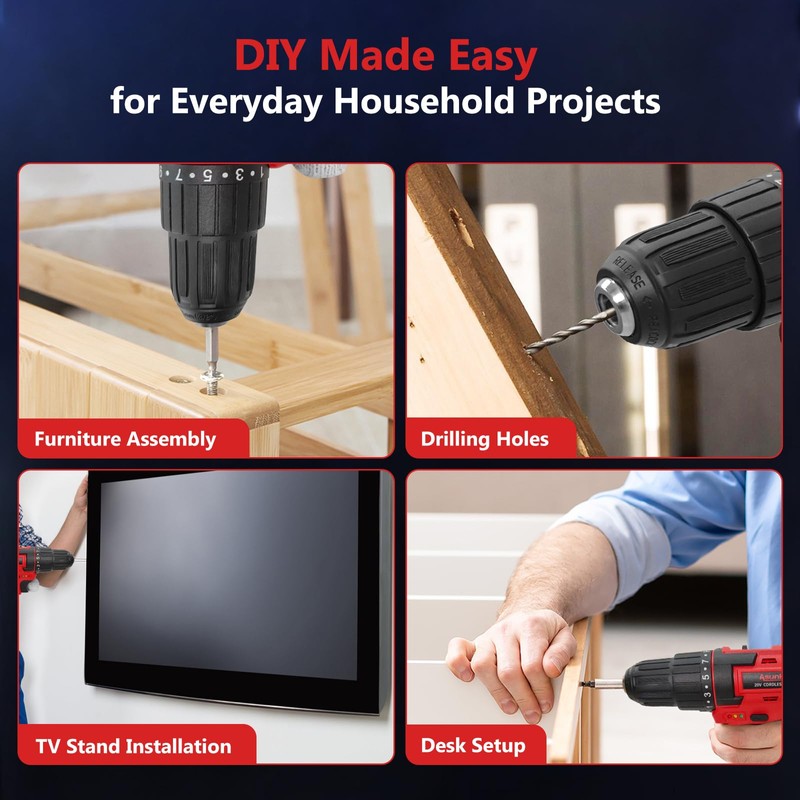 - 【Intuitive Control with Customizable Settings】 Featuring dual-speed options (0-450/0-1650 RPM) , this drill offers precise control tailored to different tasks. The stepless speed control ensures smooth transitions, giving you the flexibility to handle delicate screwdriving and high-power drilling.