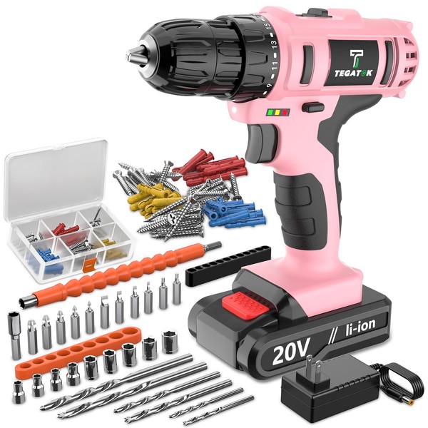 20V Power Drill Kit, Cordless Drill Set with Battery and Charger, 3/8-Inch Keyless Chuck