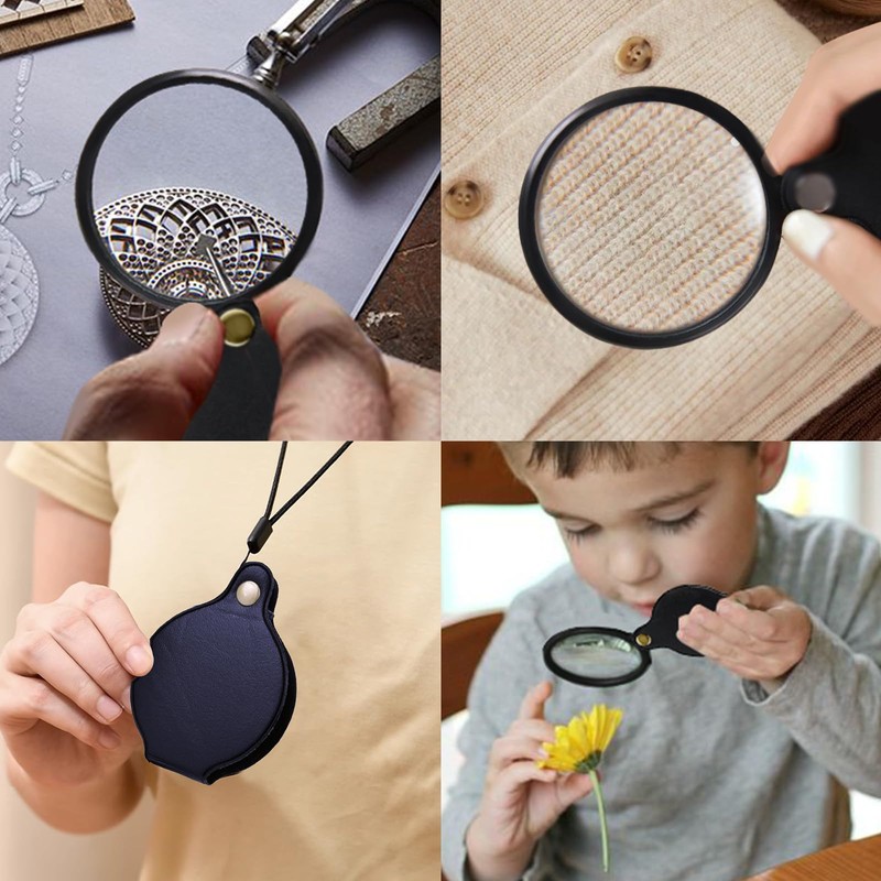 - 【PREMIUM GIFT】This pocket magnifying glass is made of optical grade glass and high-quality synthetic leather, with a sturdy structure, making it a thoughtful and practical gift for birthdays, holidays, or condolence packages