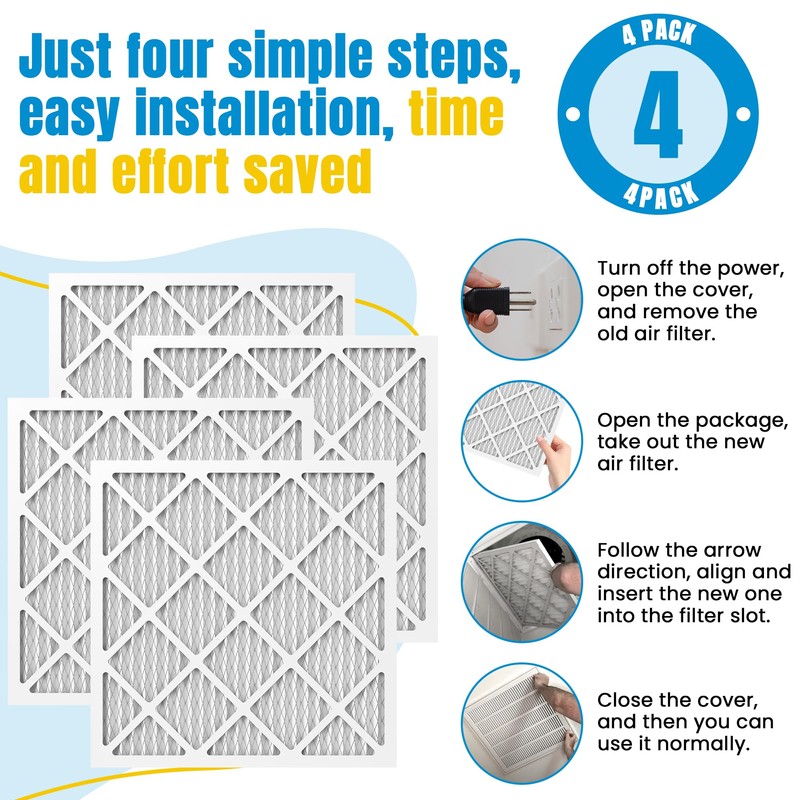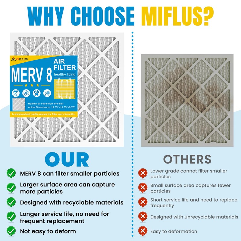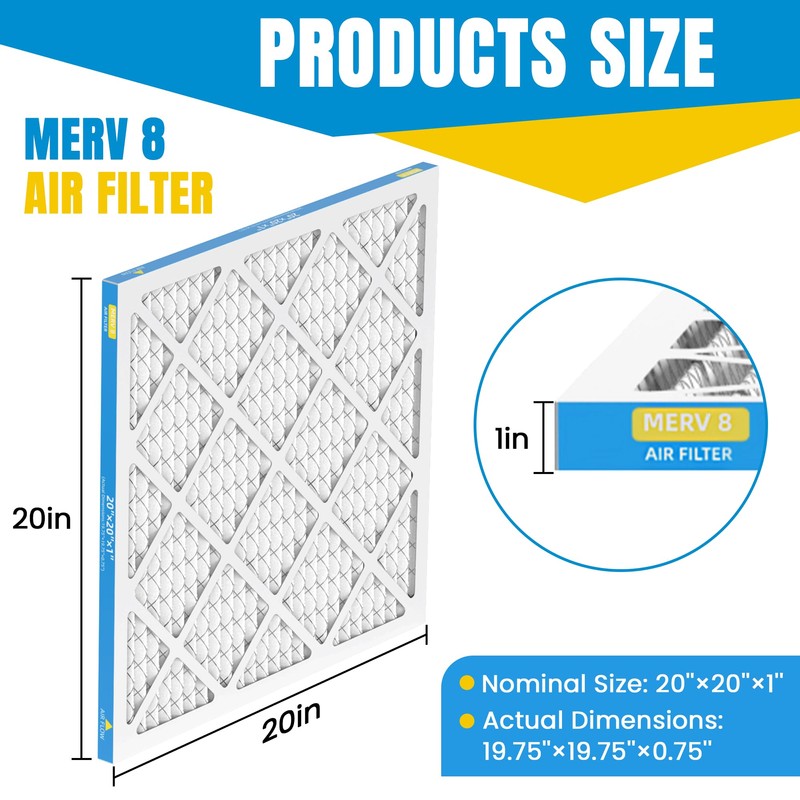 - 【MERV 8 Rated Filtration】Provides effective basic protection by capturing common airborne pollutants.Efficiently traps dust, pollen, pet dander,and other large particles (3-10 microns) to improve indoor air quality and safeguard your family's respiratory health