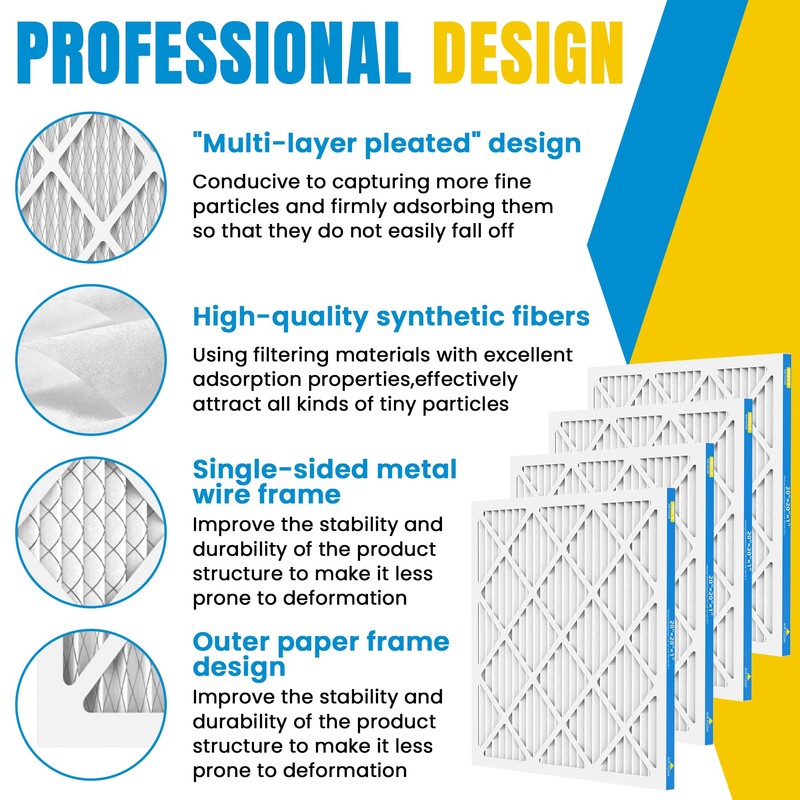 - 【Optimized for Low Airflow Resistance】Scientifically engineered structure ensures smooth airflow, preventing energy waste and potential spikes in electricity bills caused by high-restriction filters. Helps extend the lifespan of your AC/furnace equipment. Balances performance and energy efficiency for a more reliable HVAC system