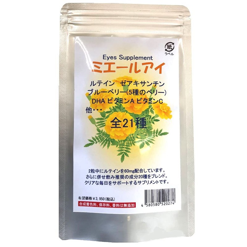 • ルテイン サプリメント「ミエールアイ」は1粒に30mg、1日量60mgものルテイン(フリー体)を高含有。