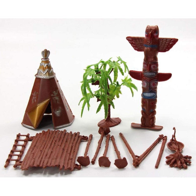 - Various Accessories -- Include 12 Indian figures, 4 horses, trees a straw shed, a tent, a wild bonfire and totem pole etc.