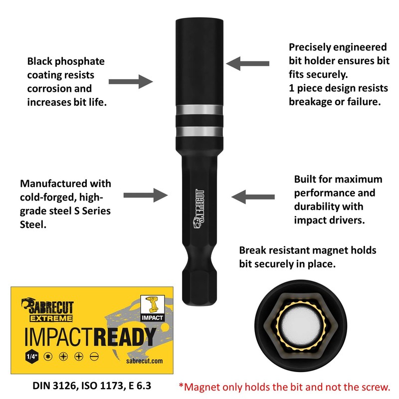 SabreCut Extreme professional quality screwdriver bits specifically designed for use with impact drivers.