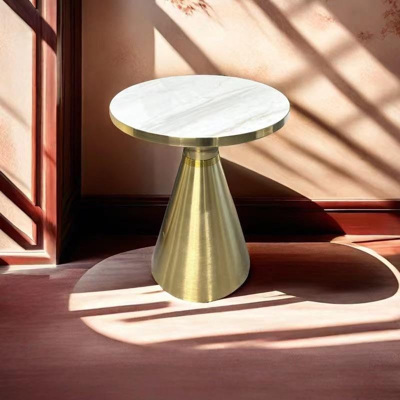 21″X17.5″ Gold Minimalist Round Living Room Table Rock Panel Surface, Creative Home Light Luxury Side Table