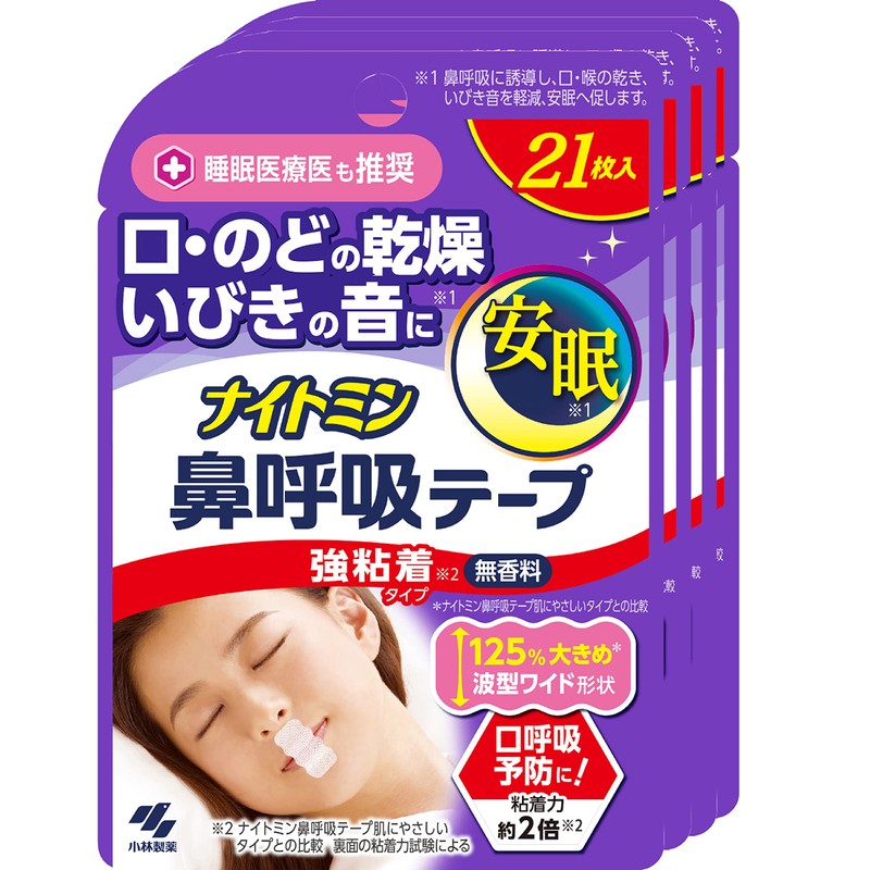【まとめ買い】ナイトミン 鼻呼吸テープ 口・のどの乾燥・いびきの音を軽減 口呼吸予防に 強粘着タイプ 無香料 21枚入×4個
