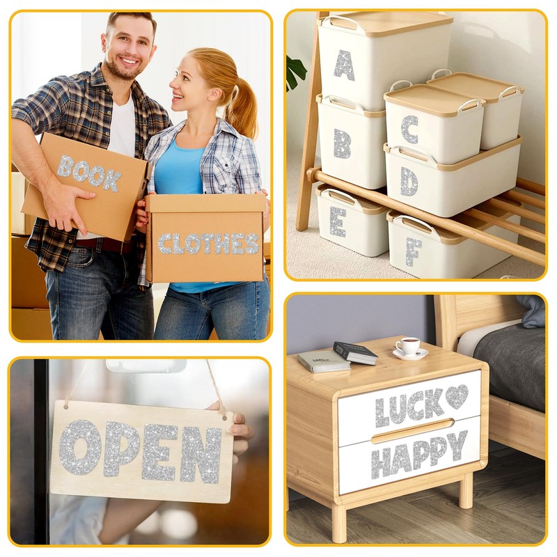 - Premium Quality and Durable Materials: The alphabet stickers are made of high quality vinyl and glitter materials, which are waterproof, have great adhesion, and are thick, making them resistant to fading and tearing. The self adhesive design ensures they stay shiny for a long time and are suitable for both indoor and outdoor use