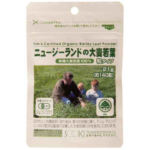 ソーキ ニュージーランドの大麦若葉 粒タイプ 21g 青汁 錠剤 有機JAS 食物繊維 葉酸
