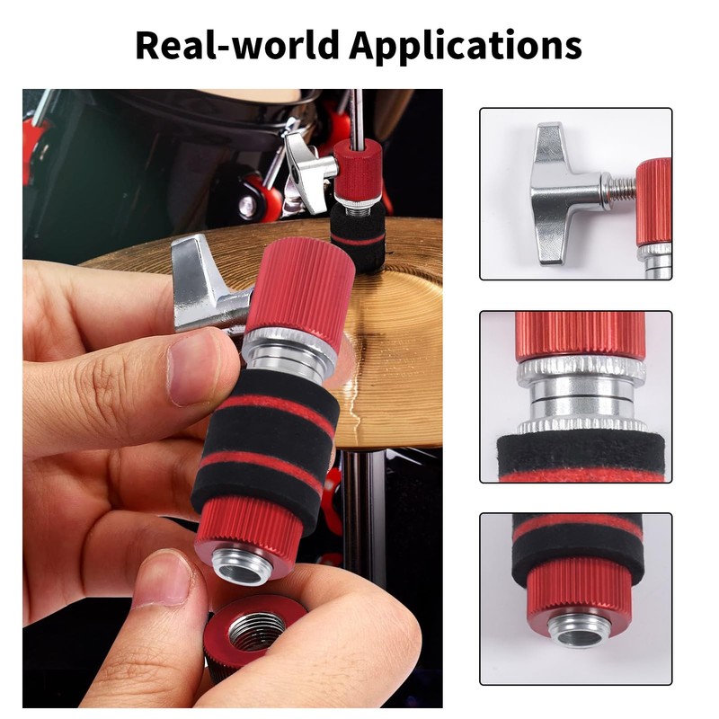- 【 Durable Hi-Hat Clutch & Secure Plastic Nuts】Hi-Hat Clutch: Made of high-grade aluminum alloy for long-term durability, fits most stands. Features a single-threaded metal locking nut to prevent loosening during play, ensuring stable hi-hat performance. Plastic Cymbal Nuts: Designed to stay firmly in place even under heavy hitting, with push-button locks that grip threaded rods tightly, ideal for stage use.