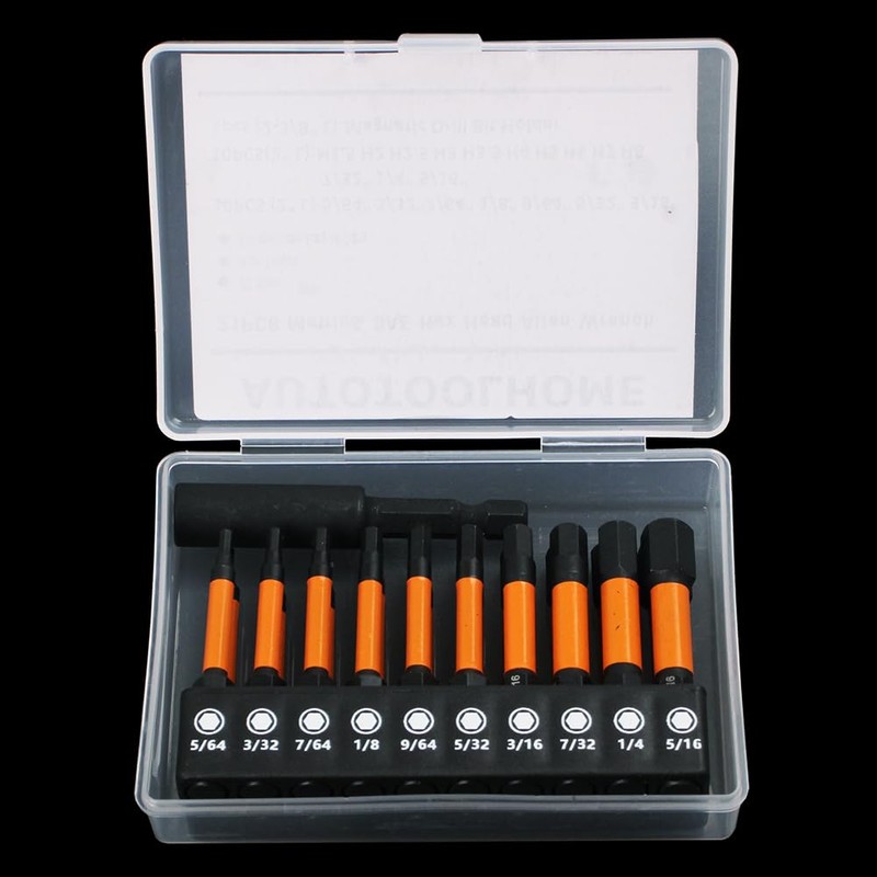 - 10pcs SAE-5/64”,3/32”, 7/64”, 1/8”, 9/64”, 5/32”, 3/16”, 7/32”, 1/4”, 5/16”.