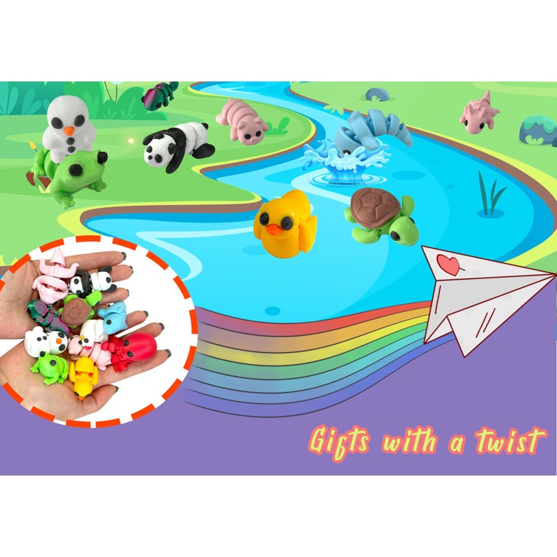 21 Pcs Mini 3D Printed Animal Set,Articulated Flexible Cute Animal Toys for Christmas,New Year,Birthday Gifts and Office Desktop Decoration