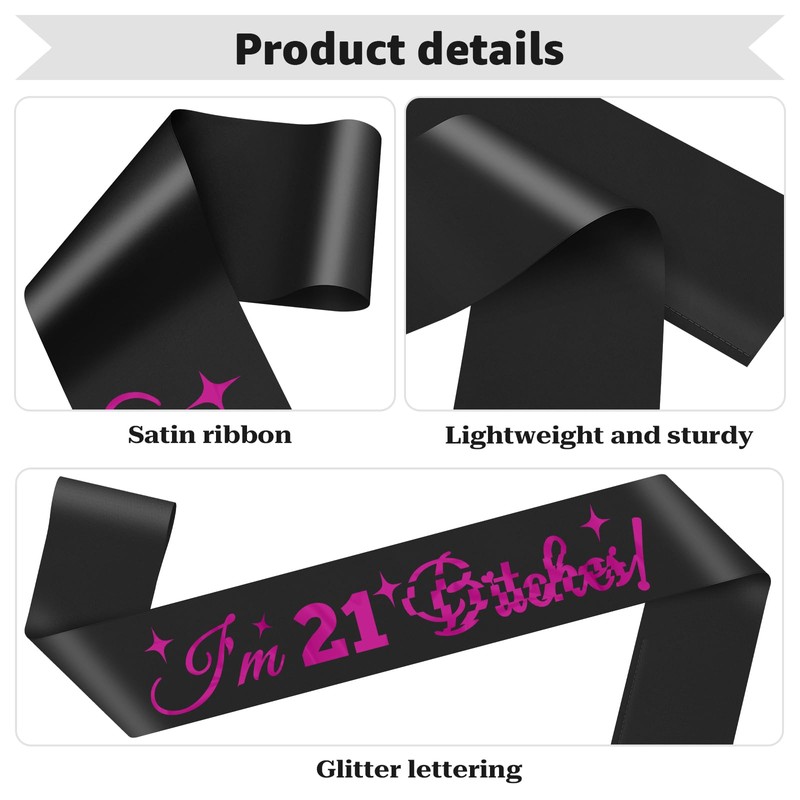 - Gift for 21st Birthday Party: Makes a thoughtful present for a beloved families or friends, You can upgrade your 21st birthday party. Enjoy a memorable birthday with your friends together and stand out with this beautiful birthday sash, it could be smart photography props. This elegant birthday sash will make you eye-catching wherever you are.
