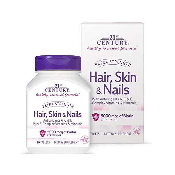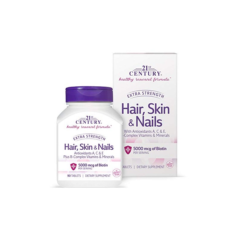 - 21ST Century Vitamins Extra Strength Hair, Skin & Nails is a powerhouse beauty support formula for your skin's moisture levels, fullness and growth of hair, and nail strength and health.