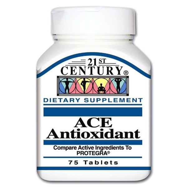 21st Century Ace antioxidant brings you vitamins A, C, and E, the complete antioxidant nutrient group, combined with the essential minerals; selenium, zinc, copper and manganese, helps neutralize free radicals which may cause cellular damage in the body.