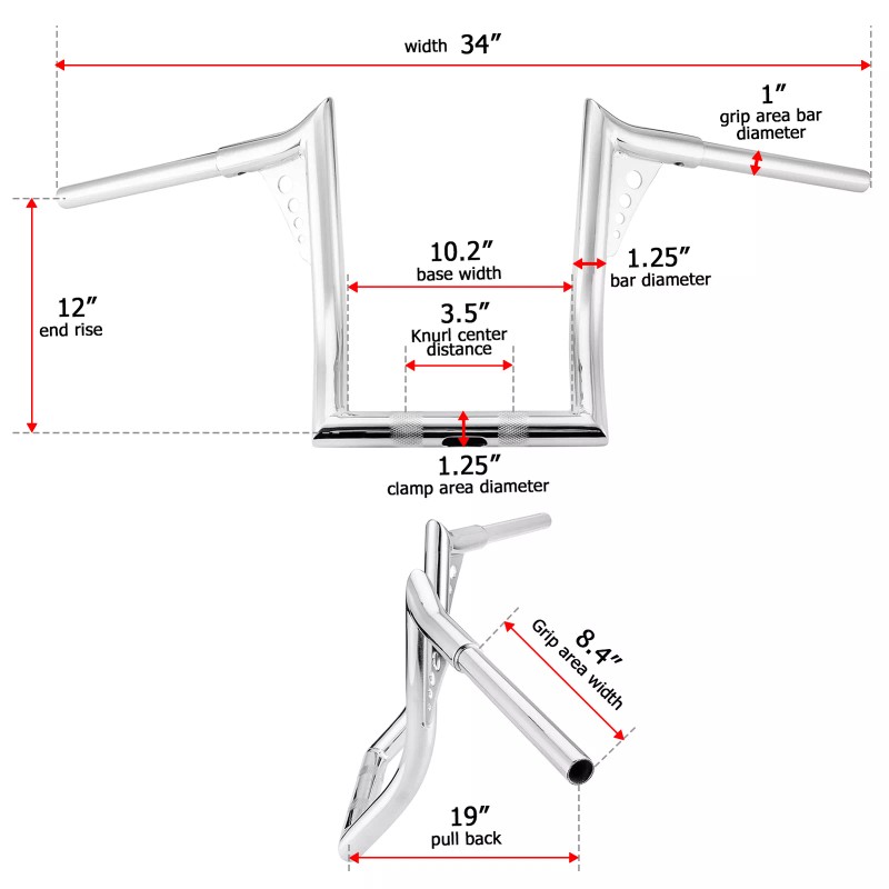 21ST Chrome 12 Meathook Ape Hanger Handlebar for Kawasaki Vaquero Voyager Vulcan 1700