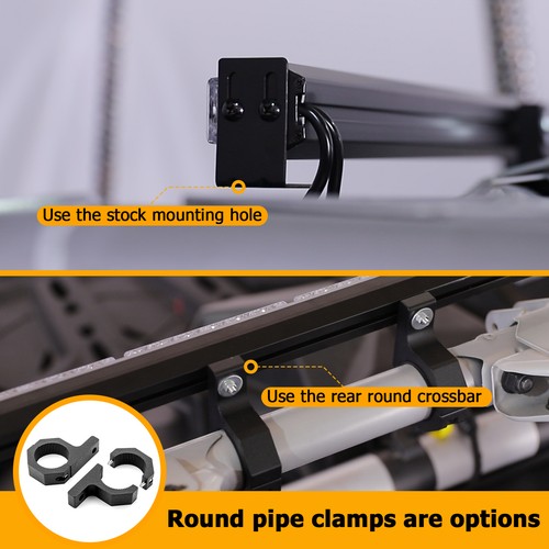 Installation can either be mounted on roll cage through the brackets on both ends of the light bar, or on roll cage using 1-2" round pipe clamps (if you need , please contact us)
