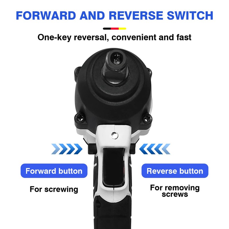 - 【2 in 1 Multifunction & Variable Speed】2 in 1 multifunctional impact wrench can also be used as an impact driller to suit different working situation. Forward & reverse button can easily change the rotating direction, 2-speed mode to meet various work requirements. Not only suitable for removing tires from cars and motorcycles, but also can be used for automotive repairs, major construction projects, heavy equipment maintenance, scaffolding or product assembly.