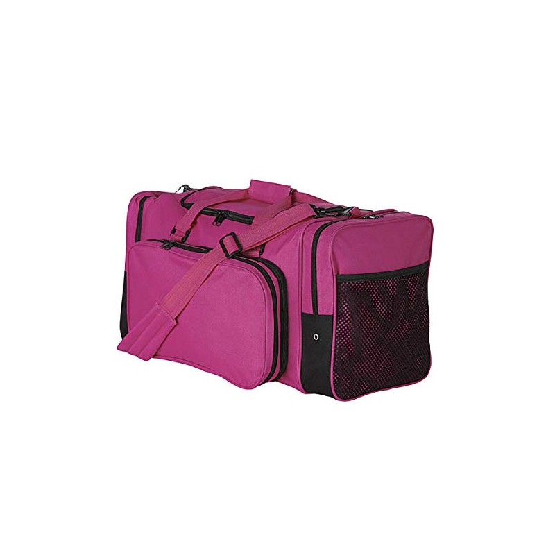 22" Blank Sports Duffle Bag Gym Bag Travel Duffel With Adjustable Strap and Removal Front Compartment (Hot Pink)