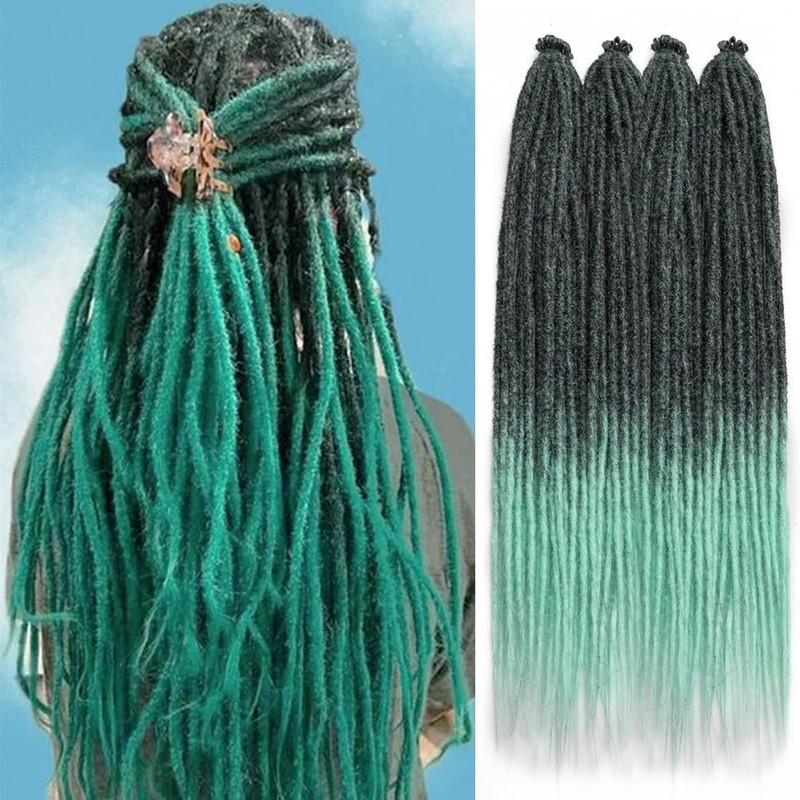 22 inch Dreadlock Extensions Single Ended, Ombre Pink Thin 0.8cm Dreads Extensions, 10 pcs Synthetic Braid in Dreadlock Extensions Reggae Hippie Crochet Dreads for Women (T/green, 22INCH)