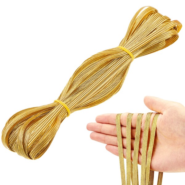 22 Yards 1/4 Inch Width Gold Elastic Band Glitter Metallic Flat Elastic Strap Braided Elastic Band for Sewing and Crafting