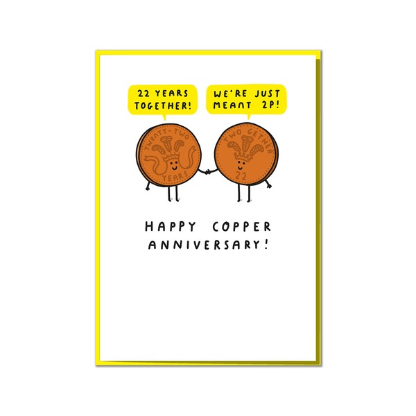 22 Years Together! We're Just Meant 2p! Cute 22nd Copper Anniversary Card