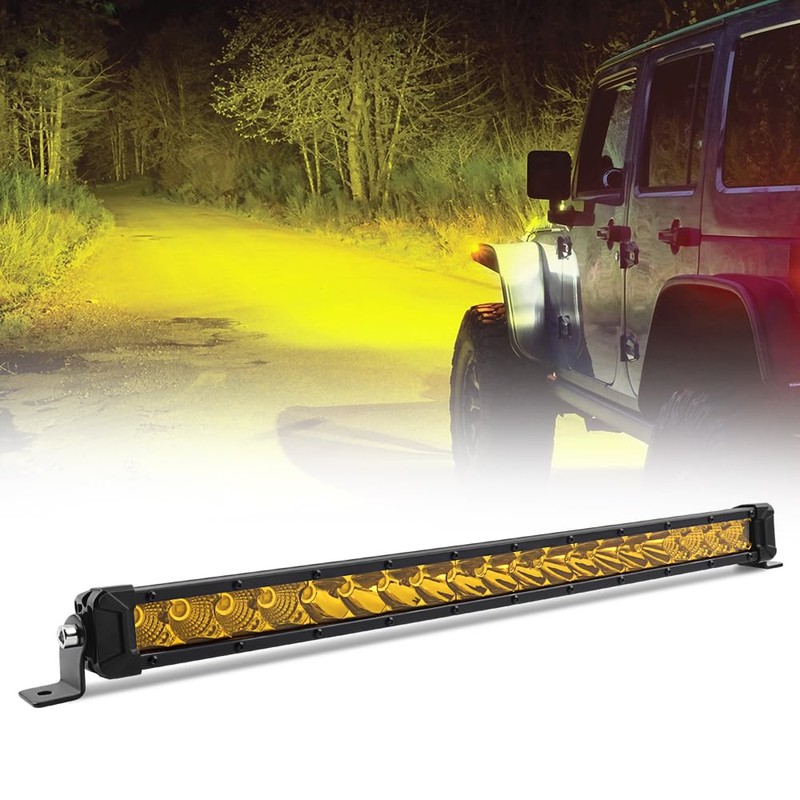 22" Yellow Led Light Bar, Single Row Flood Spot Combo Beam Led Fog Light