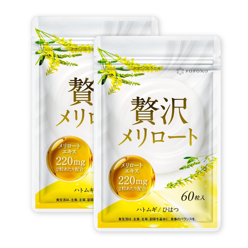 【メリロートエキス 220mg 贅沢配合 】POPONO 贅沢 メリロート 国内製造 アサイー ヒハツ カリウム ハトムギ 13種の巡りサポート成分 (2袋)