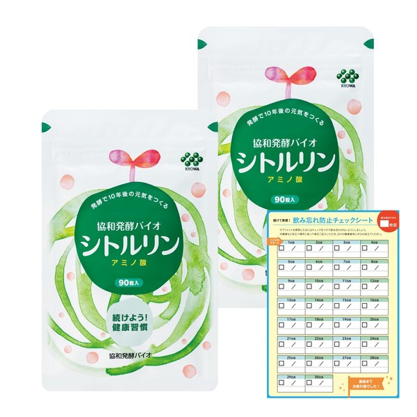 協和発酵バイオ シトルリン 220mg×90粒×2袋 (約30日分) (サプリメント/サプリ/シトルリン/アミノ酸) 飲み忘れ防止チェックシート付