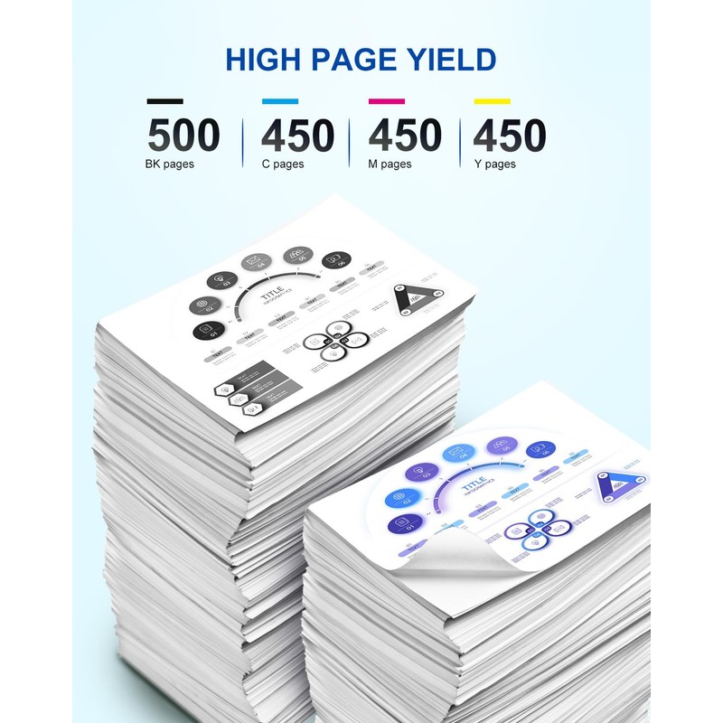 - High Page Yield: up to 500 pages per for 220xl black cartridge and 450 pages per for 220xl color cartridge (at 5% coverage)