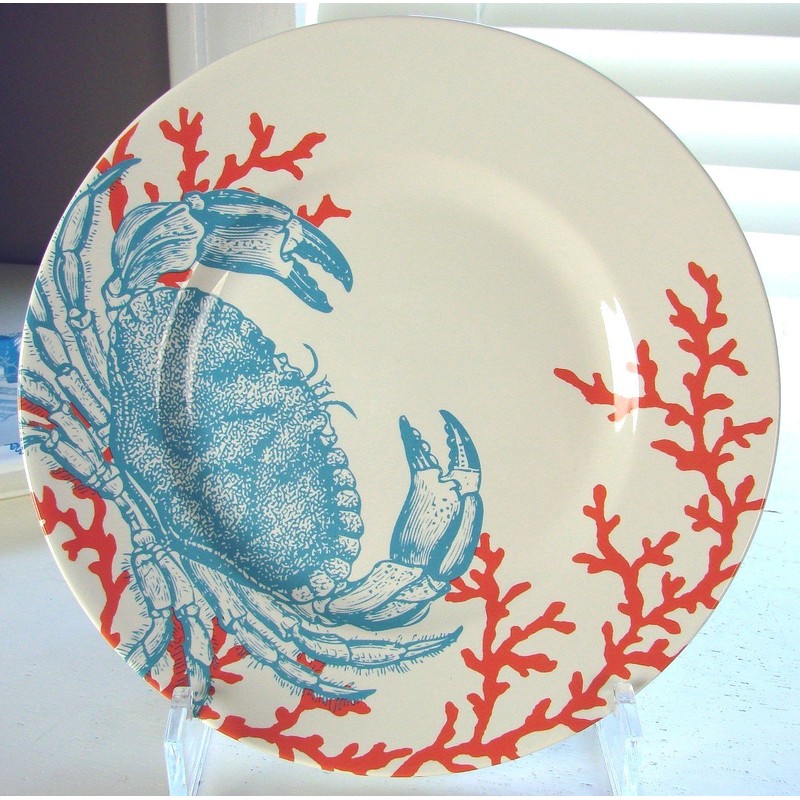 222 Fifth Coastal Life Grenada Blue Salad Plate, Crab
