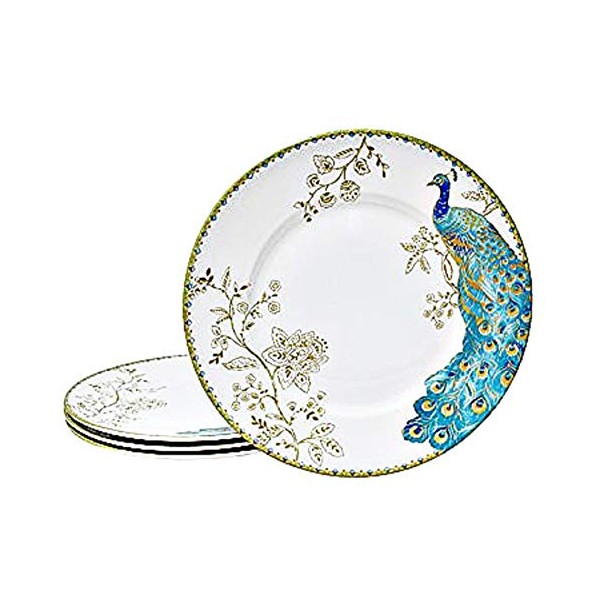 222 Fifth Peacock Garden Porcelain Dinnerware Collection Dinner Plates | Set of 4