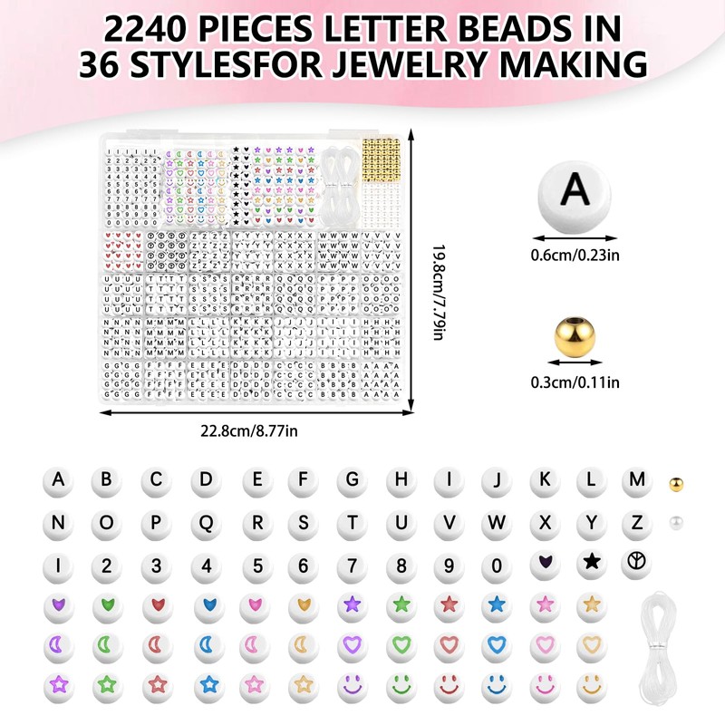 2240 Letter Beads for Friendship Bracelet Making Kit,Acrylic Letter Beads, Alphabet Beads and Number Beads,Pearls, Smile Face Beads Heart Beads Star Beads Charmsfor DIY Necklace Jewelry Making
