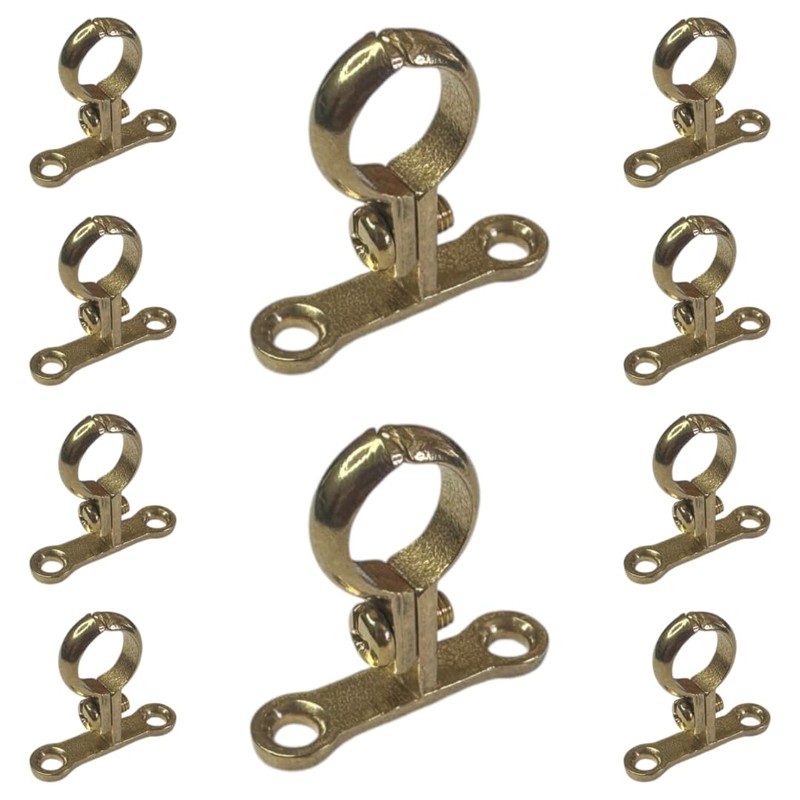 22mm Cast Brass Screw-On Pipe Bracket, Die-Cast Pipe Clip - Pack of 10