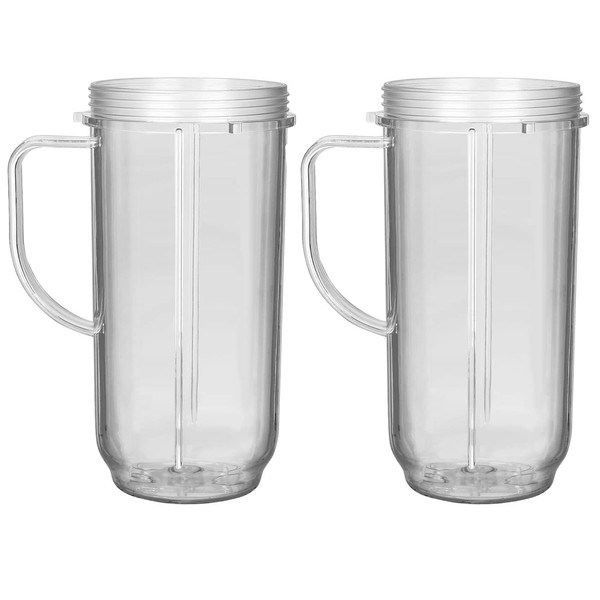 22oz Cup Compatible with NUTRiBULLET Magic Bullet Blender 200W & 250W MB1001 Series, Replacement Part Tall Mugs with Handle, 2 Pack