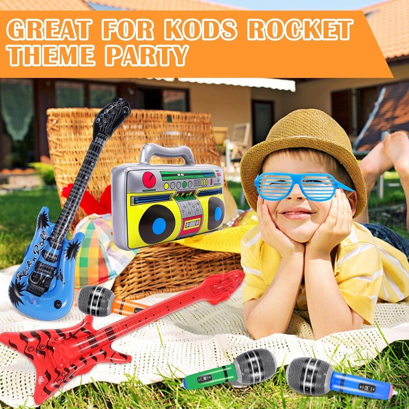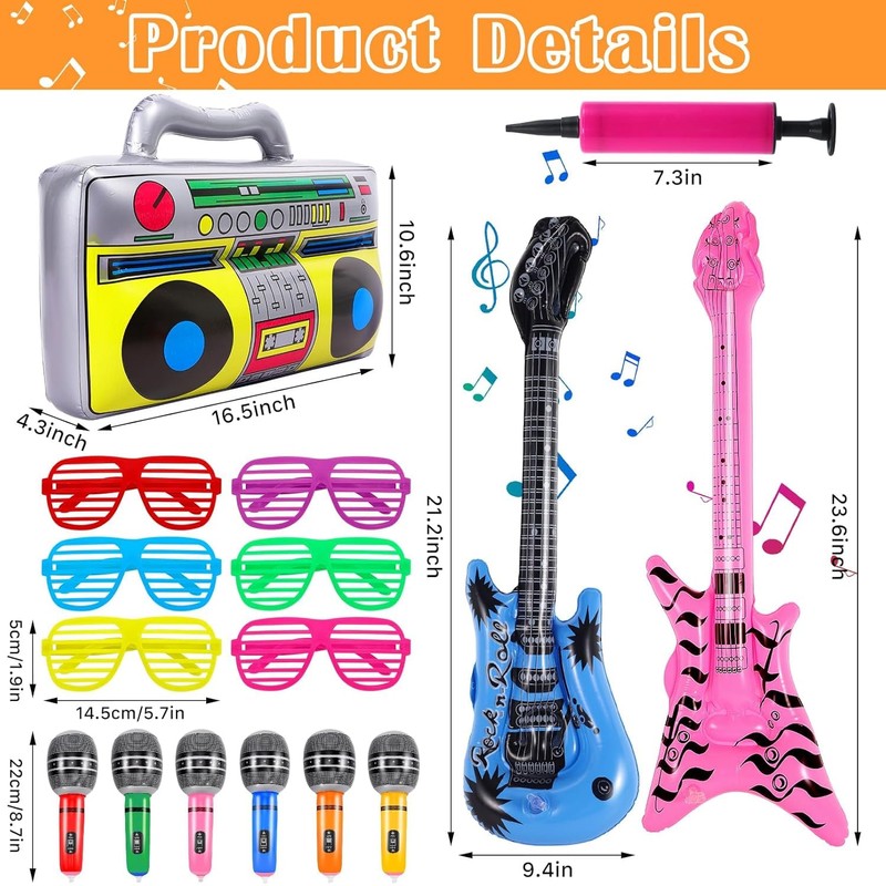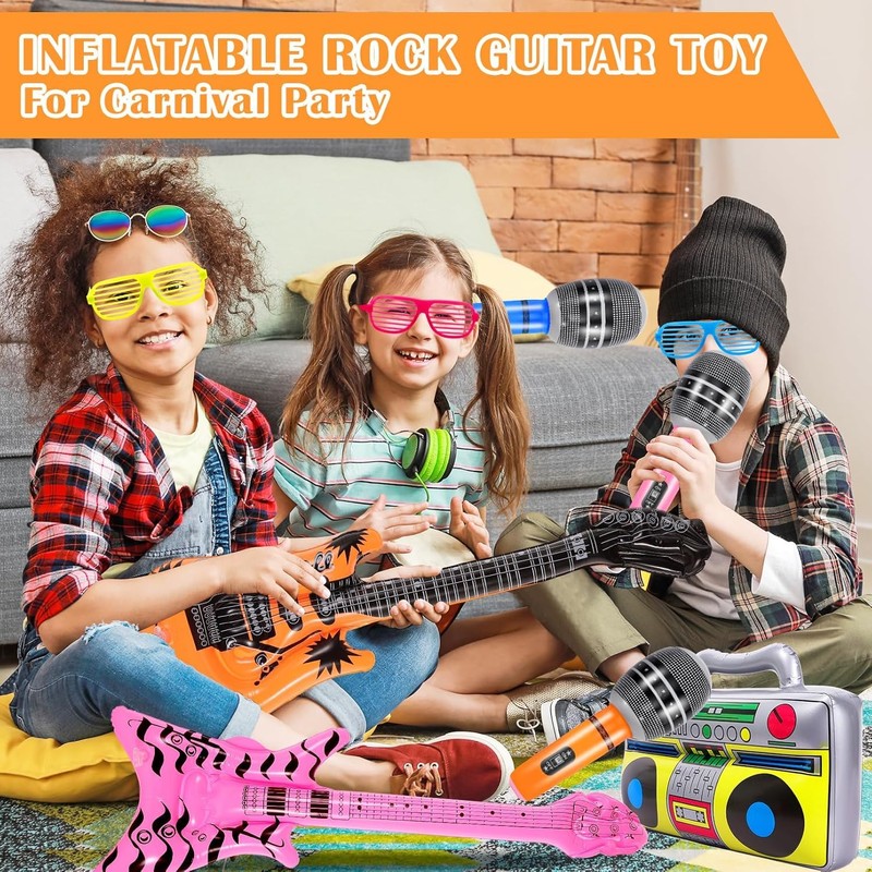 - 🎸Wide Range of Use: This inflatable instruments set can be applied as party decorations, dress-up props, game props, stage props, photo props or student prizes. Perfect for Birthday Party Favor, 80's and 90's themed parties, Carnival Prizes, Christmas, Halloween, Giveaways and more.