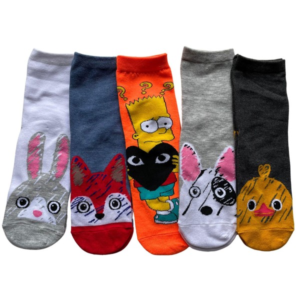 - デザイン性: うさぎ、キツネ、キャラクターなど、5種類の可愛い動物デザインが楽しめるカジュアルソックス。フロント部分には愛らしい動物の表情豊かなデザインが施され、履くたびに楽しい気分になれます。
