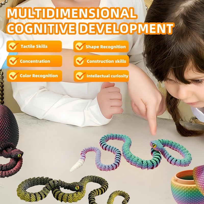 - 【SILKY SHEEN MATERIAL】The 3D printed snakes have 4 colors: BlackGolden, BlackRed, Rainbow Coloured, Multicolored. The gradient colors and silk-like sheen on the surface make them visually stunning. (Warm Tips: Due to the characteristics of the 3D printing process, the color sequence of the real object may be different from the picture. Each snake egg set will be unique!)