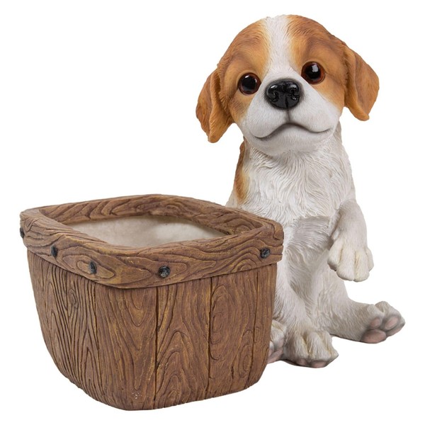 - 【花鉢に寄り添うキャバリア】陶器のような高級感のある質感が魅力のポリレジン製アニマルフィギュアです。
