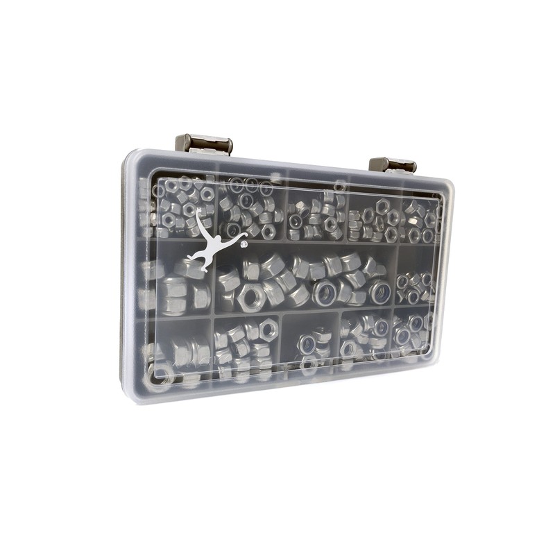 230 Assorted Nyloc Lock Nuts. A2-70 Stainless Steel M3, M4, M5, M6 & M8. in a Durable Compartment Box.